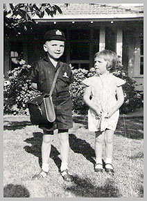 Robert Darby, aged five, about to set off on the long journey that would demonstrate the truth of Ecclesiastes 1.18: "For in much wisdom is much grief; and he that increaseth knowledge increaseth sorrow." With feminine intuition, his sister looks doubtful.